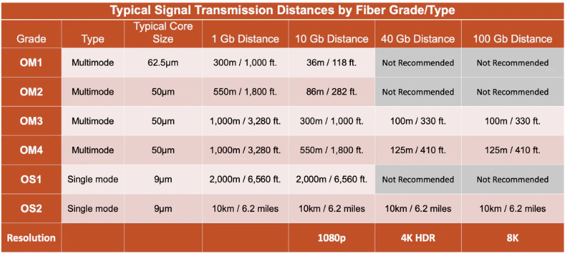 In practice, we see more integrators choosing single mode over multimode for building prewires, networking, AV distribution, security, broadcast, and most other applications.